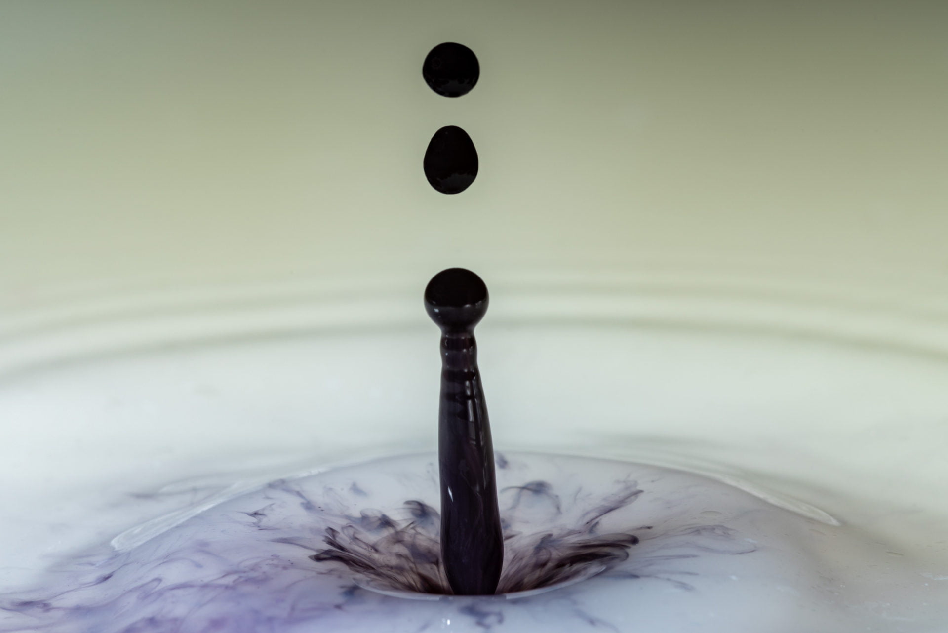 This particular picture looks like twins pure black drops spitted out the water rather than falling into it. What I really like about this picture is the complexity of the water pattern, it almost looks like a black hole is sucking everything inside.